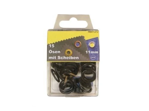 15 Ösen mit Scheiben und Werkzeug Schwarz 11mm rostfrei