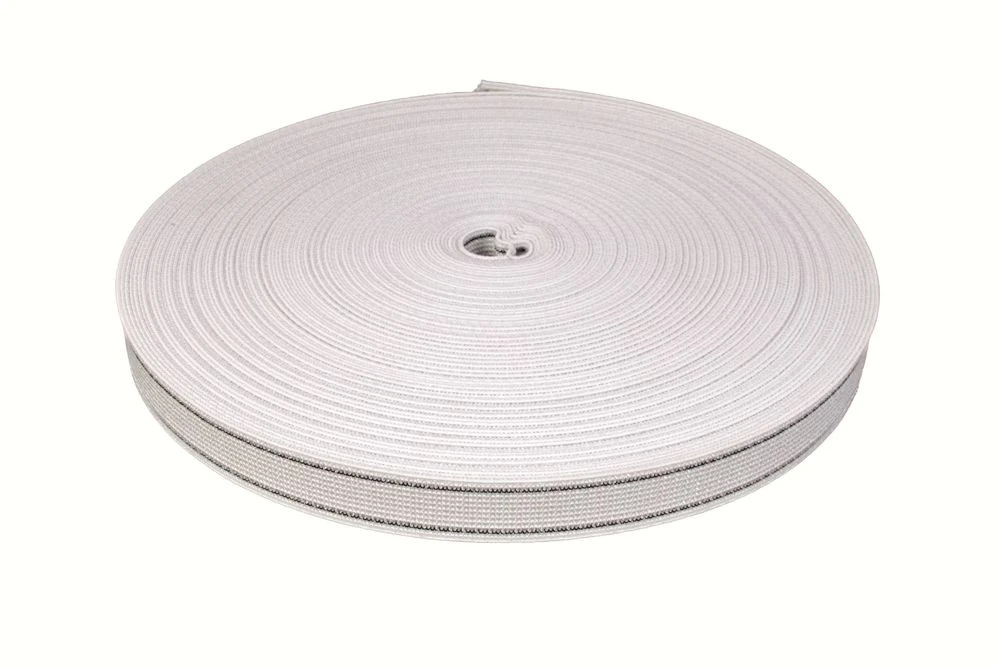 50 Meter Polster Gummigurte Elastikmaterial Weiss 3 cm breit / 2 Streifen Dehnung 80 % zu verarbeiten bei Kanten und Armlehnen für Polstermöbel.