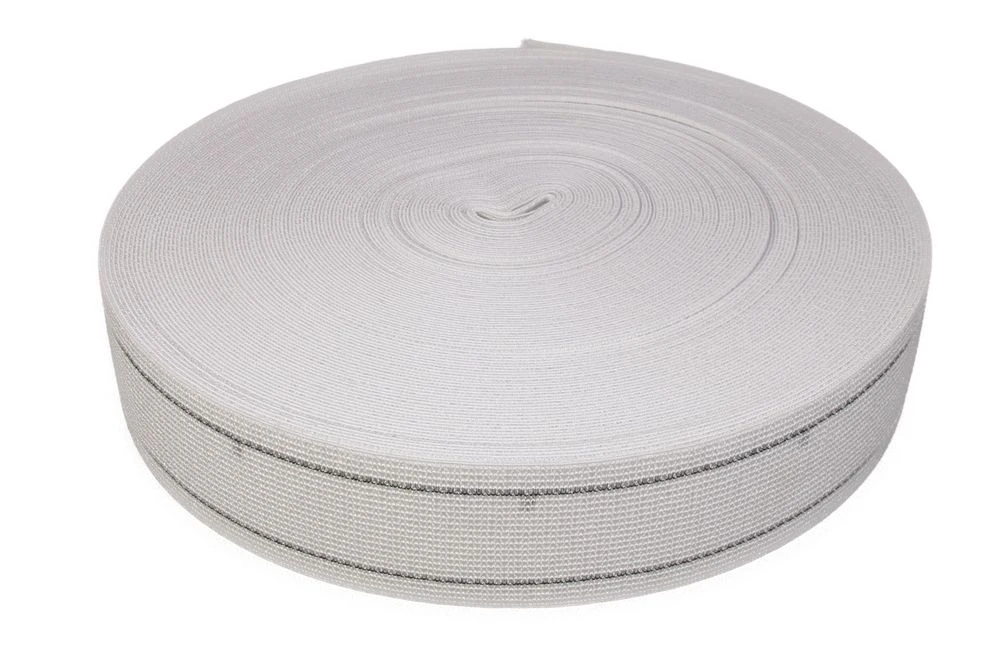50 Meter Polster Rücken Gummigurte Elastikmaterial Weiss 6 cm breit / 2 Streifen Dehnung 100 %