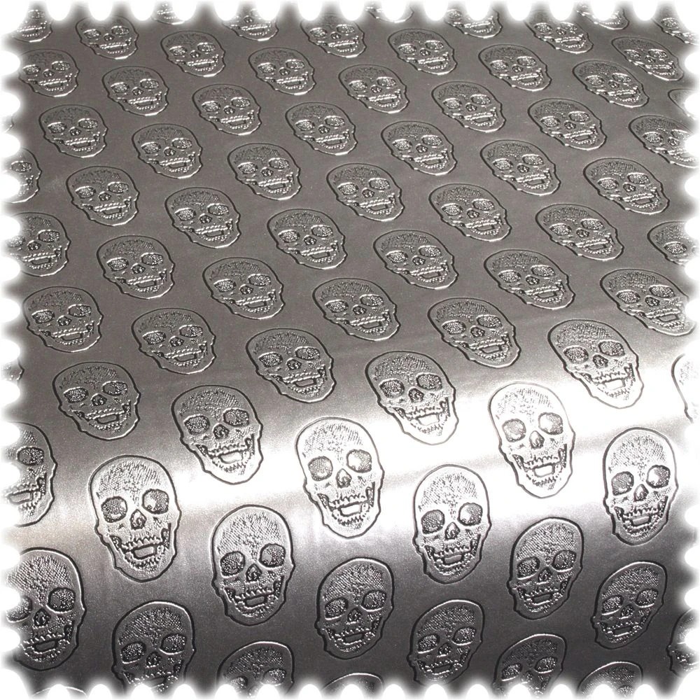Sehr außergewöhnliches Kunstleder mit geprägten Totenköpfen und edlem Glanz. Dieses spezielle Kunstleder wurde von Top Designern entworfen, ist brandneu und überzeugt durch eine einzigartige Qualität. Diablo eignet sich hervorragend für Bezug von Polstermöbeln, Stühle und Sofas, Taschen oder anderen Accessoires und Dekorationen. Dieses exklusive Kunstleder wurde in Frankreich produziert.
