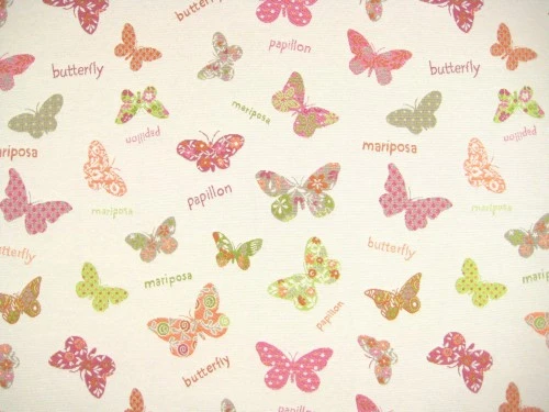 AKTION Flachgewebe Möbelstoff Schmetterling Weiss / Pink / Orange / Grün
