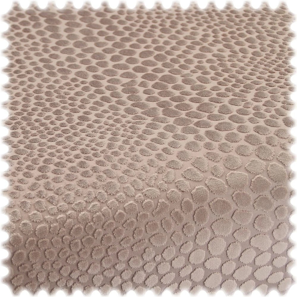 Odetta ist ein sehr hochwertiger Velours de Géne Möbelstoff mit Jacquardflach- und Floreffekt. Bei diesem Velours de Géne bestehen der Fond aus einem klassischem Jaquardflachgewebe in Ripsbindung. Die edle Punktmusterung bildet sich aus einem samtig weichen Flor. Der Pol erhält durch die Ausrüstung in der Regel eine leichte Schräglage. Der Fachmann spricht hier von Strichrichtung. Dadurch entsteht je nach Pollage entweder längst oder quer, der Eindruck einer glänzenden Oberfläche, welche durch das Zusammenspiel von Licht und Schatten entsteht. Dieser Glanzeffekt macht auch die Besonderheit und den optischen Reiz eines Velours aus. Die zusätzlich stark ausgeprägte Hoch-Tief-Optik, zieht bei diesen Polsterstoff garantiert alle Blicke auf sich.