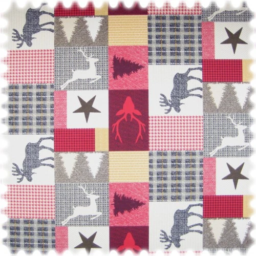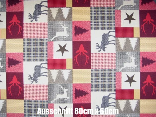 Farbdruck Möbelstoff Elch Bordeaux / Rot / Beige