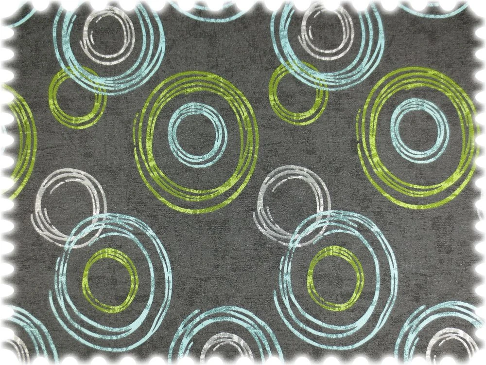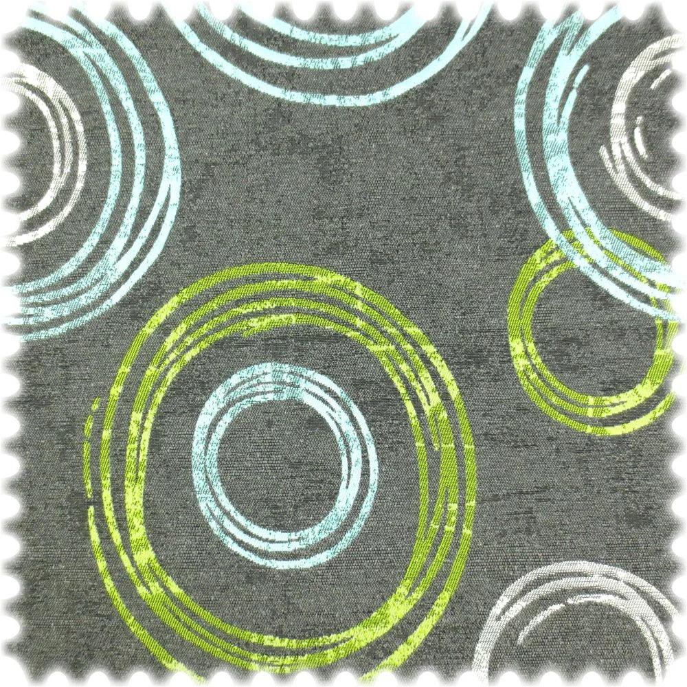 Jacquard Flachgewebe Möbelstoff Circle Anthrazit / Türkis / Grün