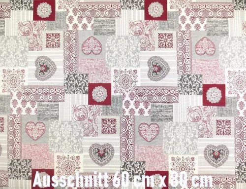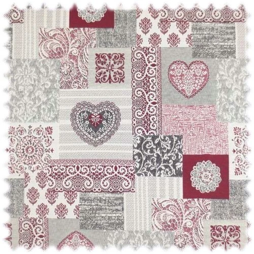 Jacquard Flachgewebe Möbelstoff Herz Rot im Patchwork Design