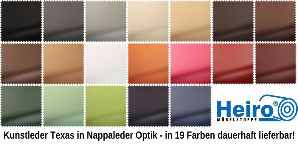 Texas hat die Optik und Haptik eines Nappaleders und ist durch seine naturgetreue Ledernarbung kaum von Echtleder zu unterscheiden. Dieses neue Kunstleder hat eine Öko-Tex Standard 100 Zertifizierung und ist REACH Konform. Leicht dehnbare Ausführung, dadurch optimal für Korpus Verklebungen und zum beziehen von Spannteilen. Natürlich auch für alle Arten von Bepolsterungen bestens geeignet!