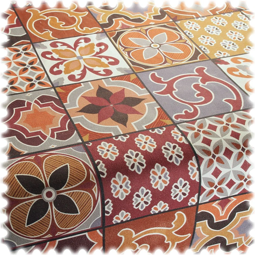 Naturfaser Baumwoll Möbelstoff Lissabon Terracotta im Azulejos Design