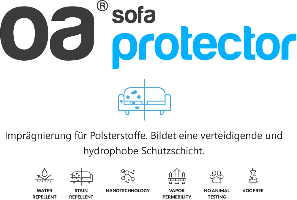 - WOHLFÜHL VERSPRECHEN – Keine Sorge vor Verschmutzungen, auch mit Kindern oder Tieren. Das OA Sofa Protector Spray ist vegan und dermatologisch getestet. Gut für dich und deine ganze Familie!