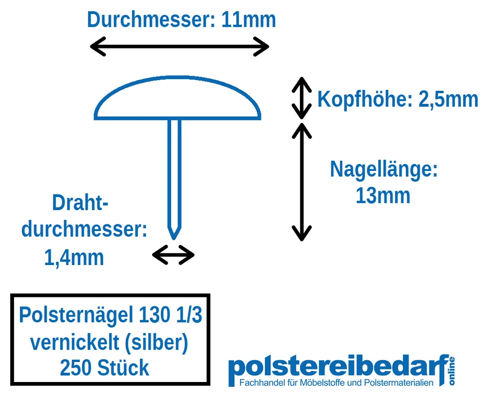 Polsternägel haben eine lange Tradition beim Polstern. Es gibt sie in vielen Farben, Größen und mit ganz unterschiedlich geformten Köpfen. Polsternägel können dicht an dicht angebracht werden oder in einem bestimmten Abstand. Auch über Gimpen, Bändern oder Borten sehen sie interessant aus.