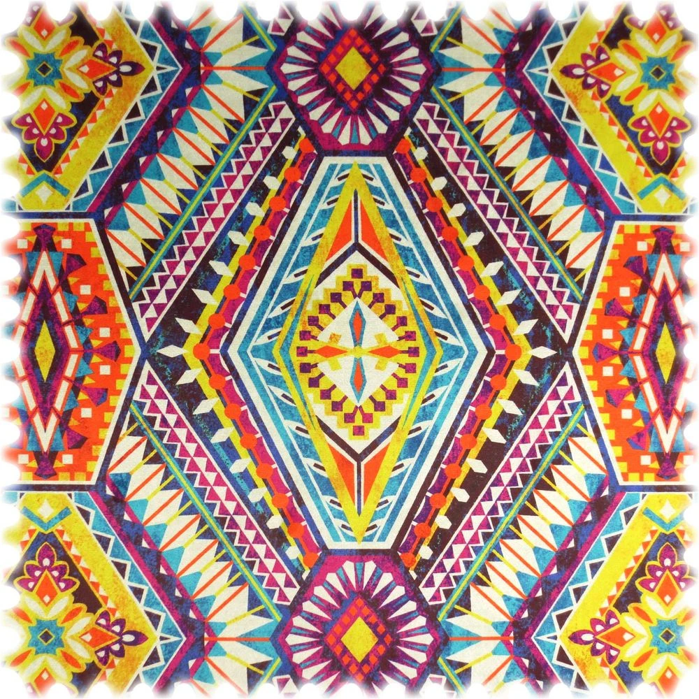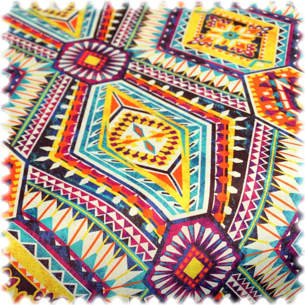 Exklusiv in einem aufwendigen Verfahren bedruckter Möbelstoff, in Ethno Optik. Dieser Samtstoff ist sehr strapazierfähig und weißt eine Scheuerbeständigkeit von 70.000 Touren auf. Zusätzlich ist er mit einem Fleckschutz ausgerüstet und dem entsprechend schmutz- und wasserabweisend. Der samtweiche exotische Stoff eignet sich mit diesem besonderen Motiv bestens für den Bezug von Polstermöbeln, Türpolsterungen, Vorhänge, Tagesdecken, Tischdecken, Wandbespannungen oder Kissenbezüge. Auch die Einarbeitung in Taschen oder andere Accessoires lässt jedes Objekt sommerlich strahlen und haucht ihm wahrlich Leben ein.