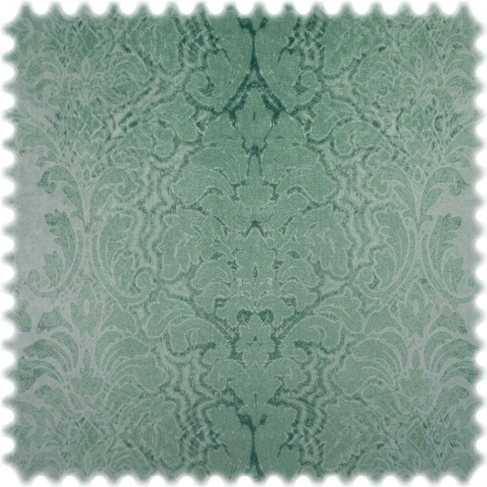Samt Velours Möbelstoff Ornament Dubai Mint Grün mit Fleckschutz