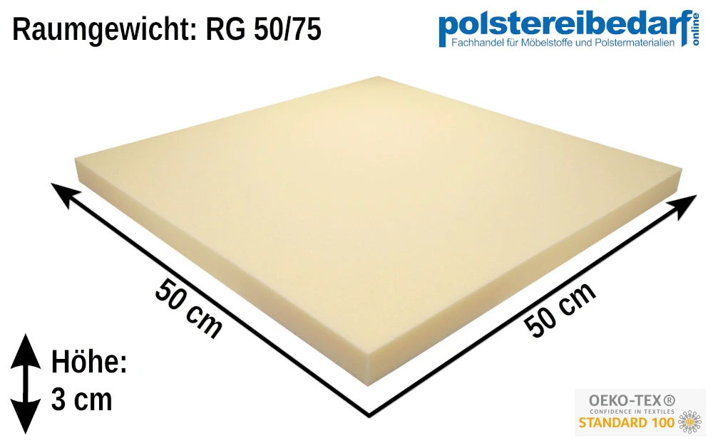 - DATEN: Gelbe Schaumstoff Kissen – 3cm dick – 50x50m – RG 50/75 – Stauchhärte 75