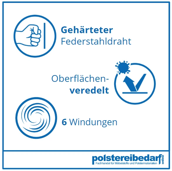 Die noch in der handwerklichen Fertigung eingesetzten einzelnen Sprungfedern bestehen aus gehärtetem oberflächenveredeltem Federstahldraht, dessen Enden mit dem letzten Federdraht verknotet (Fachbegriff: verkröpft) sind. Alle Sprungfedern werden in verschiedenen Drahtdicken, Drahtdurchmessern, Gesamthöhen und mit unterschiedlicher Gangzahl (Windungen) hergestellt. Diese Unterscheidungsmerkmale bestimmen auch die Federeigenschaften. Meist sind 6 gängige Federn angemessen. Sie ergeben einen festen aber nicht zu harten Sitz. Die Federn werden mit Gurten, untereinander und mit dem Rahmen des Möbelstücks durch Schnürung verbunden.