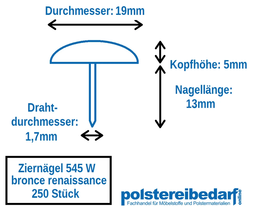 Ziernägel haben eine lange Tradition beim Polstern. Es gibt sie in vielen Farben, Größen und mit ganz unterschiedlich geformten Köpfen. Ziernägel können dicht an dicht angebracht werden oder in einem bestimmten Abstand. Auch über Gimpen, Bändern oder Borten sehen sie interessant aus.